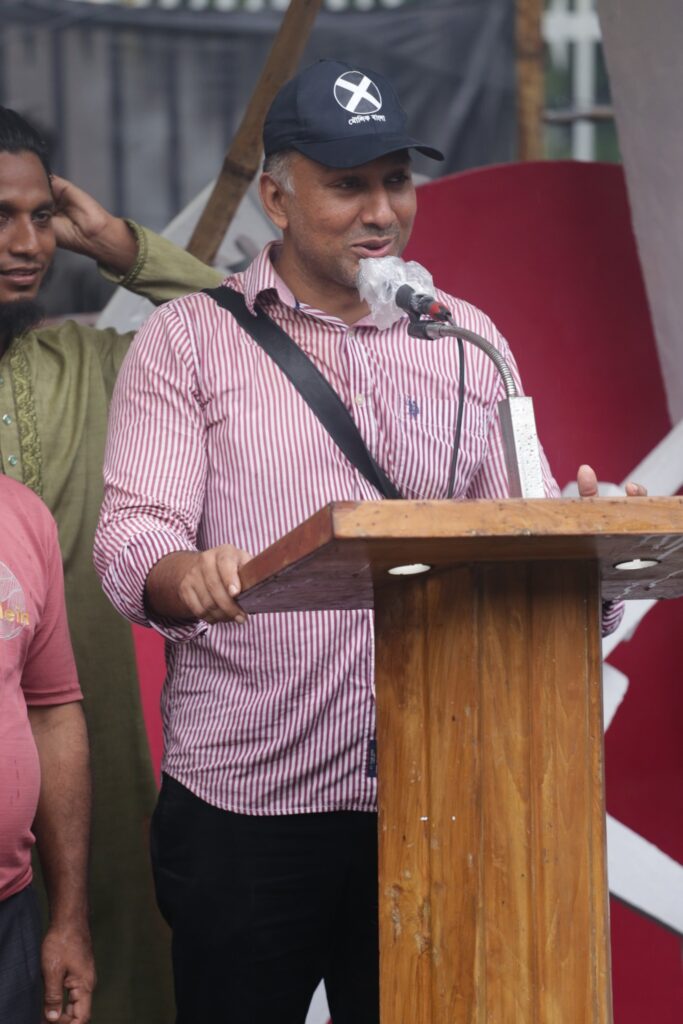 He joined politics in 2017, where he was an active worker in BNP, later on he performed the senior Vice Chairman role in Zia cyber force, before he started as Chairman of Moulik Bangla. Though Moulik Bangla started the journey from 2012, but could not avail registration till now, due to their stand on the belief of Bangladeshi sovereignty. He actively participated in the revolution of July-August, 2024 in Dhaka. In many places, under his direct supervision, the procession against the fascist regime of Sheikh Hasina were demonstrated, like- press club, shaheed minar, Dhaka university, mirpur DOHS, mohakhali DOHS, baridhara DOHS and RAOWA. On 5th August 2024, 10 retired army officers, stood in front of DGFI head quarter, to demand the release of AYNAGHOR captives. He was in the leadership role, among them. He was shot by a rubber bullet in the press club. A young man beside him was shot in Mirpur 14. He believes ALLAH has saved his life for a greater purpose to serve the country and nation. At present he is participating in the Bangladeshi election, 2026 with the mark- PEN, where Moulik Bangla went for an alliance with another newly formed political party- Jonotar Dol, due to not having registration at the present.